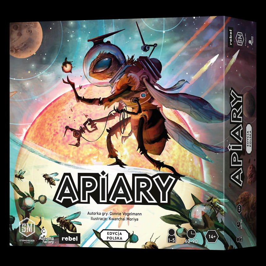 W odległej przyszłości ludzkość zniknęła z Ziemi, a miejsce po niej zajęły… pszczoły. Niepozorne owady ewoluowały w niezwykle rozwinięty gatunek, który opanował zaawansowane technologie i rozpoczął eksplorację kosmosu. Apiary to strategiczna gra euro, w której jako przedstawiciele jednej z 20 kosmicznych frakcji budujemy ule, eksplorujemy planety i zarządzamy pracownikami – pszczołami o rosnącej sile i ograniczonym czasie działania.