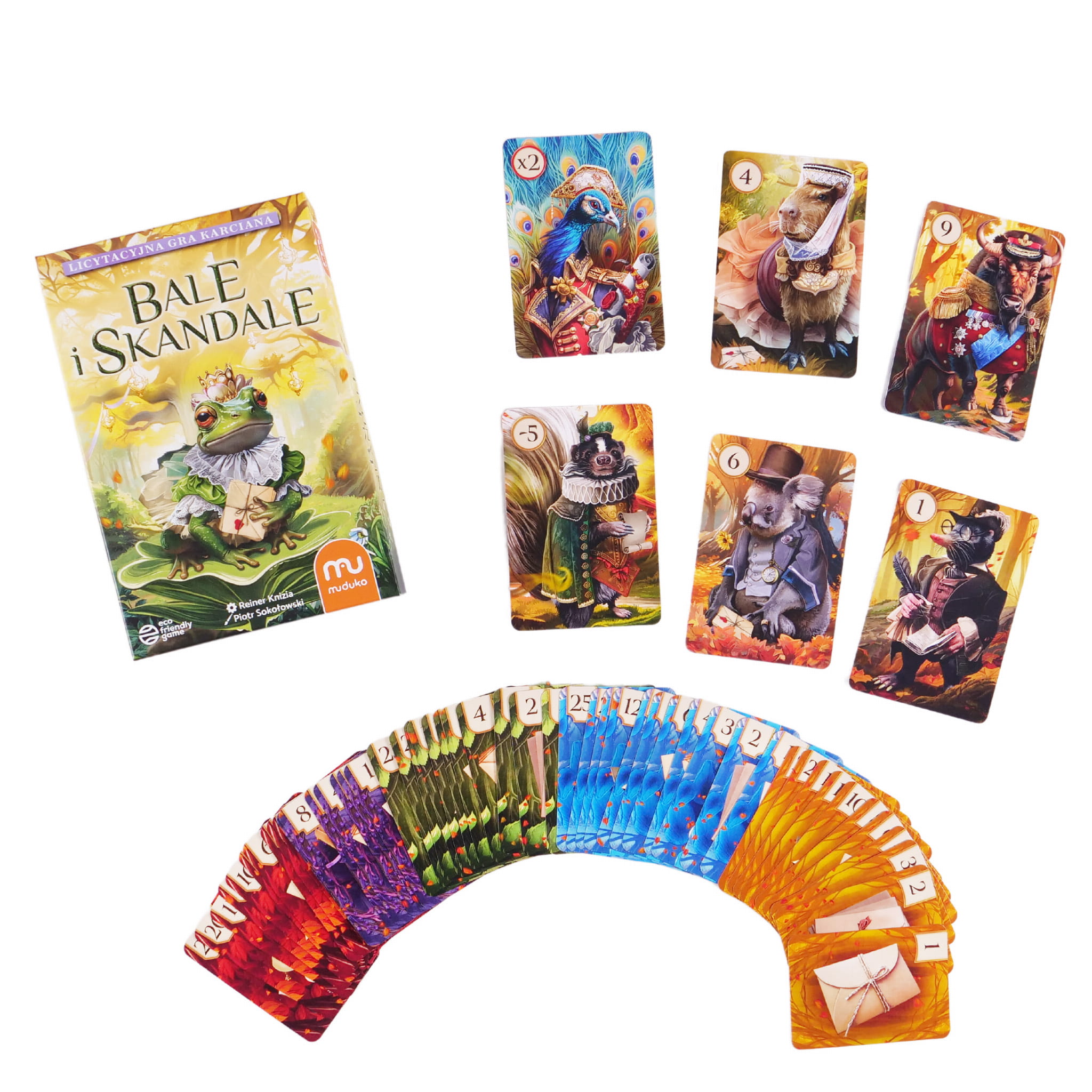 Witaj w świecie intryg, obietnic i towarzyskich układów! Bale i Skandale to dynamiczna gra licytacyjna autorstwa Reinera Knizii, w której liczy się spryt, blef i umiejętne zarządzanie zasobami. Zwycięży ten, kto najlepiej odnajdzie się w towarzyskiej grze pozorów, zdobędzie prestiż i... nie zbankrutuje!