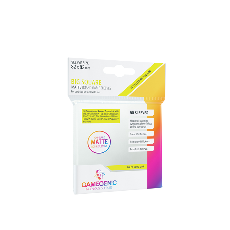 Karty do gier planszowych cierpią za sprawą częstego tasowania i ciężkiej ręki, dlatego też ich zabezpieczenie powinno być ważne dlacieszyć się dużym zainteresowaniem każdego szanującego się gracza. Gamegenic Matte Board Game Sleeves zapewniają najwyższą ochronę, jednocześnie zachowując doskonałewspaniałe wyczucie przy tasowaniu.